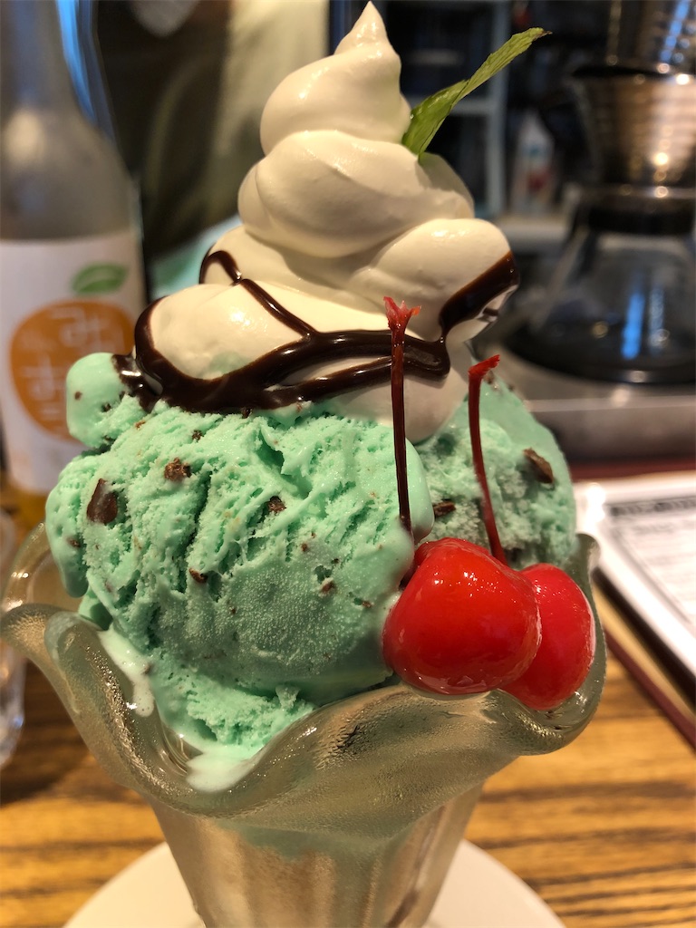 そんでもって今日も朝から役所で色々してかーらーの、チョコミントパフェもしんどかったw